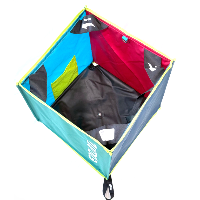 Gegenüber dem Original steht er weniger stramm und elastisch, hat keinen doppelten fixierbaren Boden für bessere/mehr Wurfleinenaufbewahrung, keine Multiflaps, weniger Befestigungsmöglichkeiten und kann sinnvoll nur einmal gefaltet werden (das Original lässt sich zweimal falten auf Mini-Größe). Auch fehlt ein Verschluss.